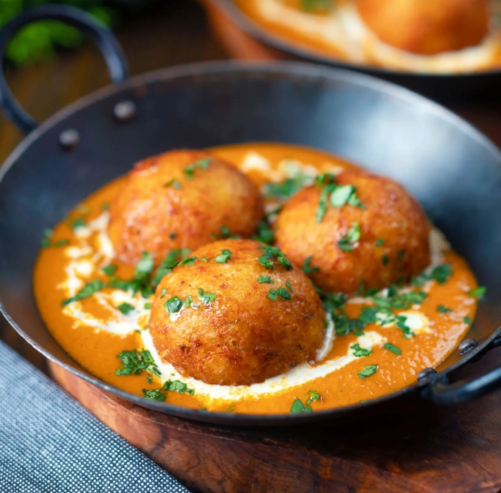 Gluten free. Spicy. Paneer, tomato puree, onion, garlic, ginger, butter, cream, cilantro, spice mix, honey, cashews.