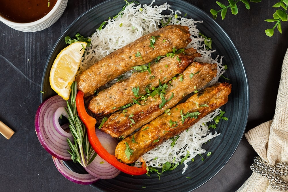 Gluten free. Minced lamb. green chili. ginger. cilantro. mint. fried onion. mustard oil. spices. Baked in clay oven.
