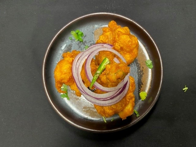 Spicy. Onion. herbs. spices. cornflakes. breadcrumb. crispy. Choice of Veg or Paneer.