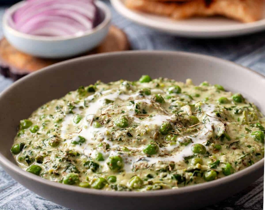 Gluten free. Green pea. onion. fenugreek. cashew. butter, cream.