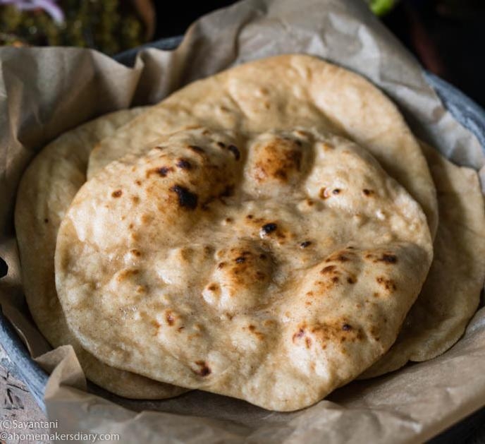 Vegan. Whole wheat bread, tandoor preparation.