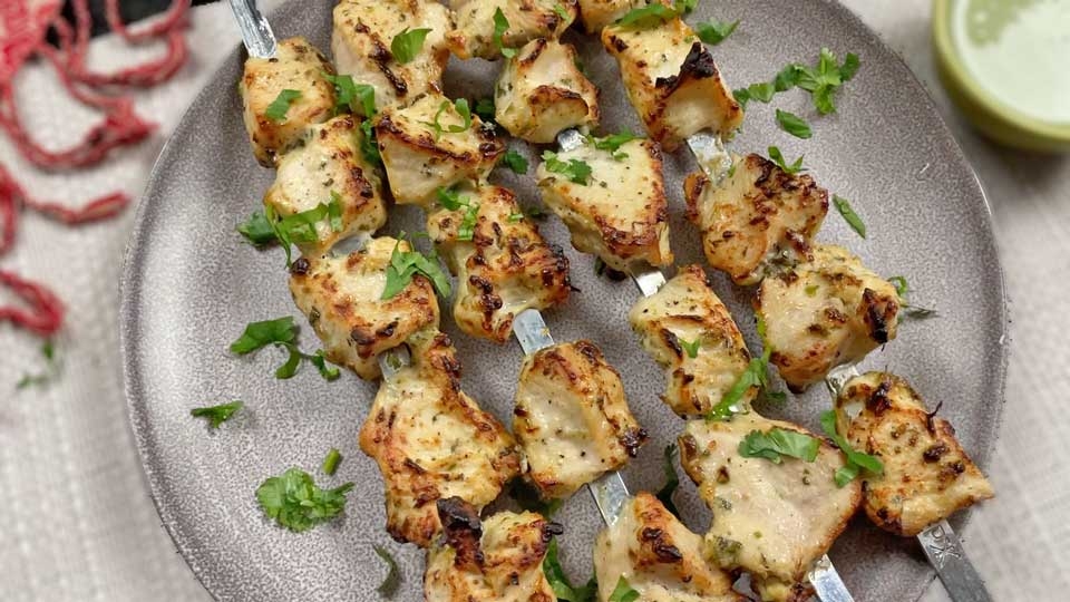 Gluten free. Paneer, yogurt, spices, red chili. Baked in clay oven.