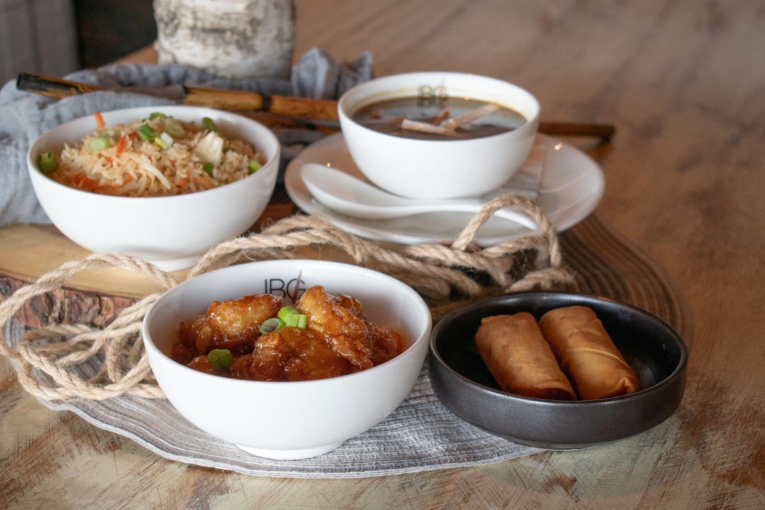 Orange juice. orange peel. ginger. tangy. Choose Chicken or Shrimp. Chinese Lunch Specials served with Veg Spring Roll & Soup of the Day. Choice of Rice: Steamed White/Veg/Chicken Fried Rice. Add Veg/Chicken Hakka Noodles $4.