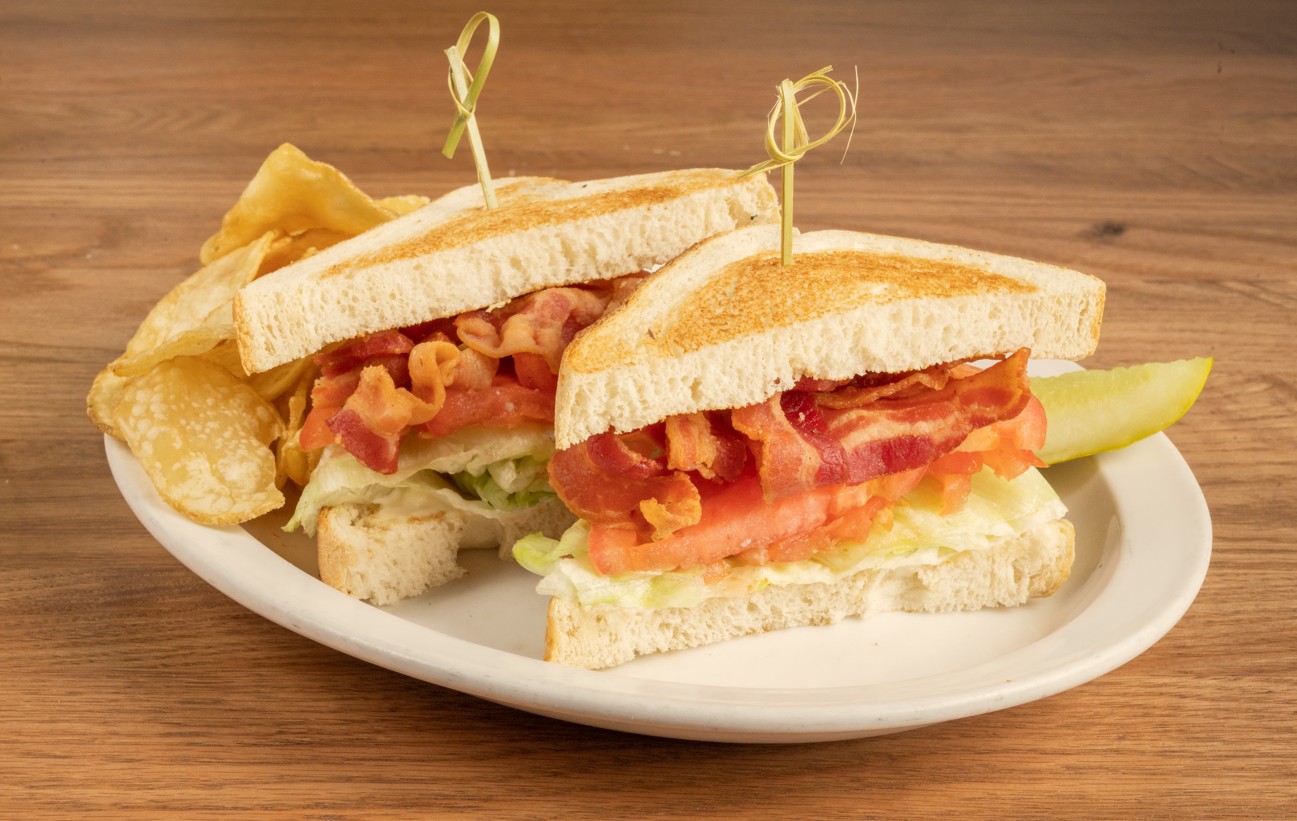 Crispy white toast piled high with bacon and topped with lettuce, tomato and mayo.